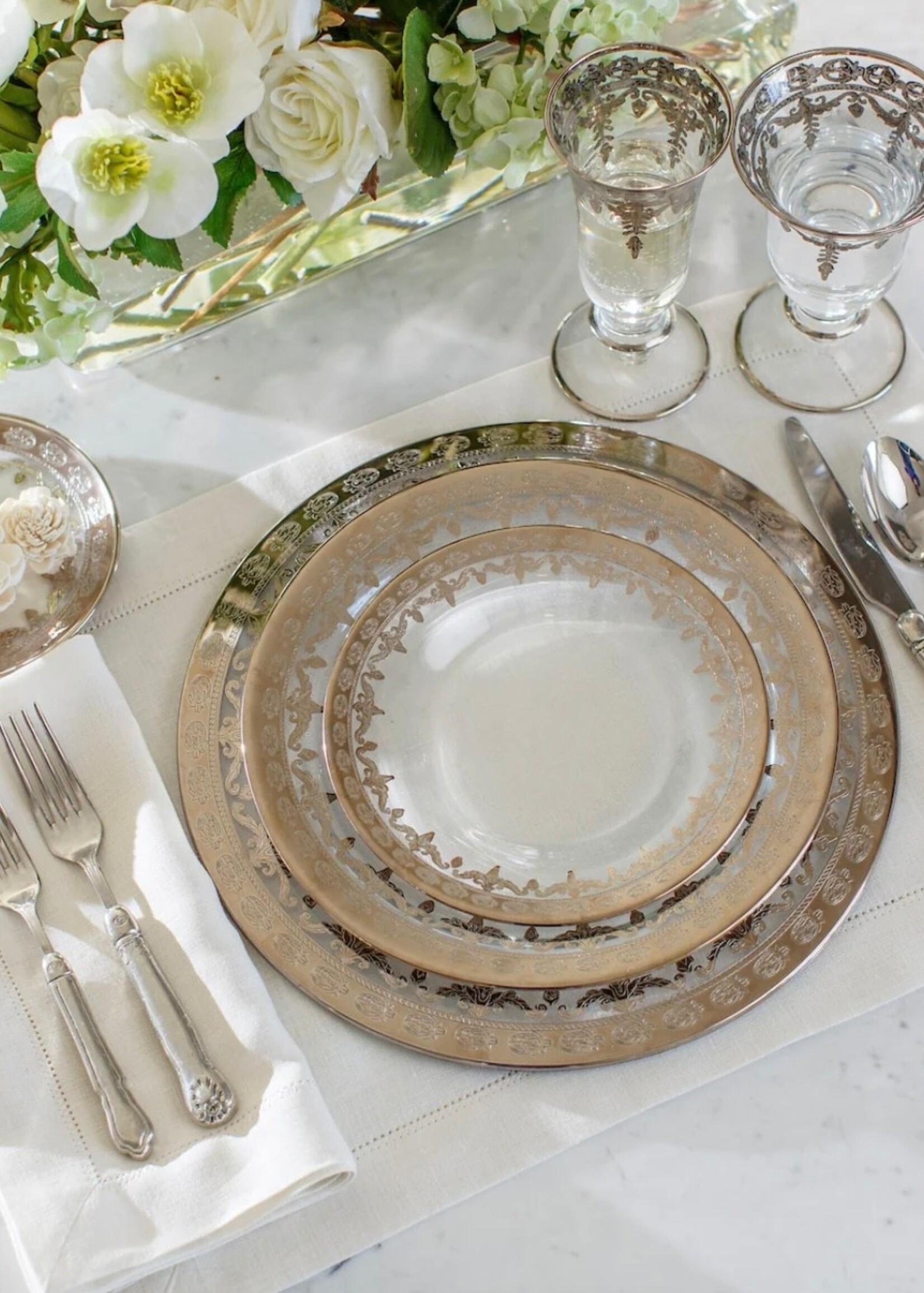 Artisans outside of Florence, beautifully combine luxurious materials, intricate detail and subtle touches. This piece is hand-etch and painted with platinum highlights. Hand made in Tuscany.